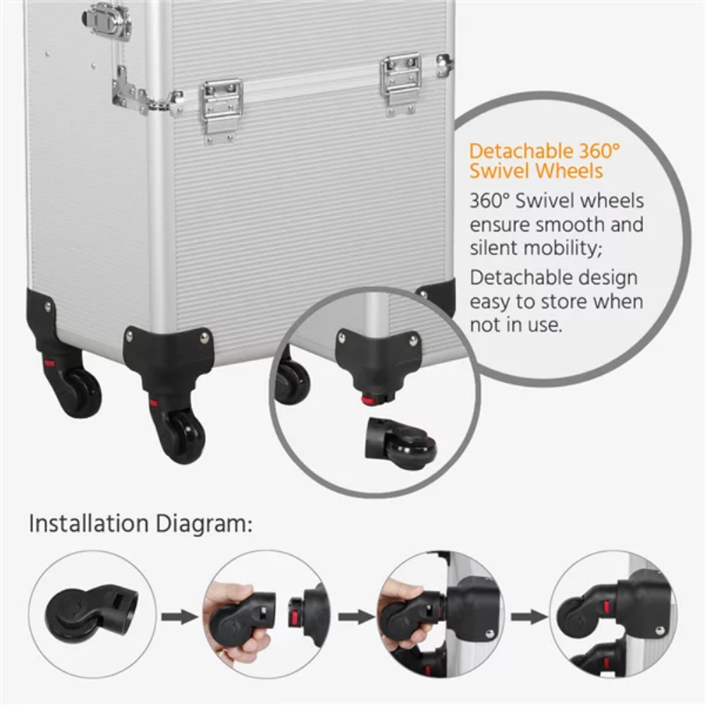 3-in-1 Rolling Professional Makeup Luggage Trolley